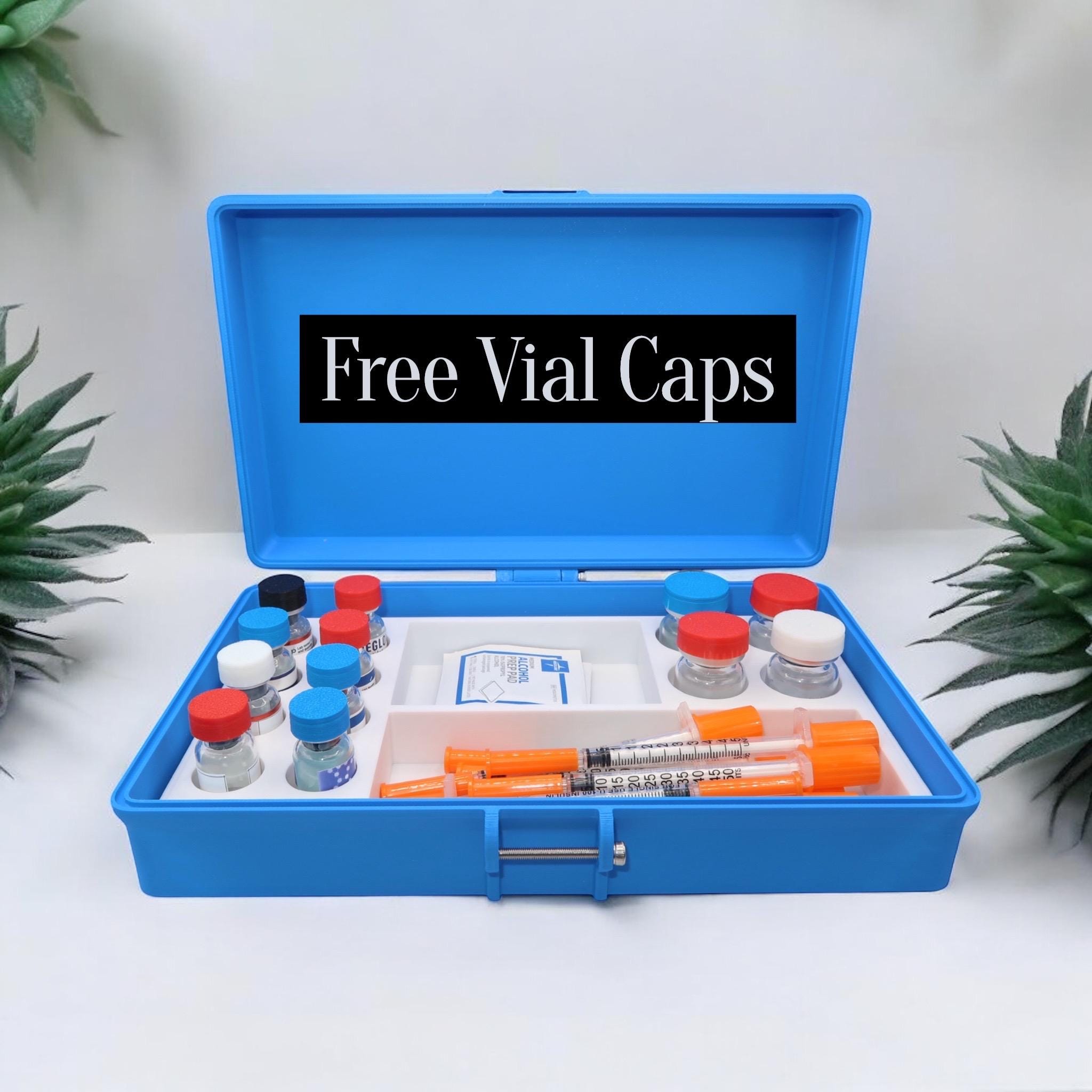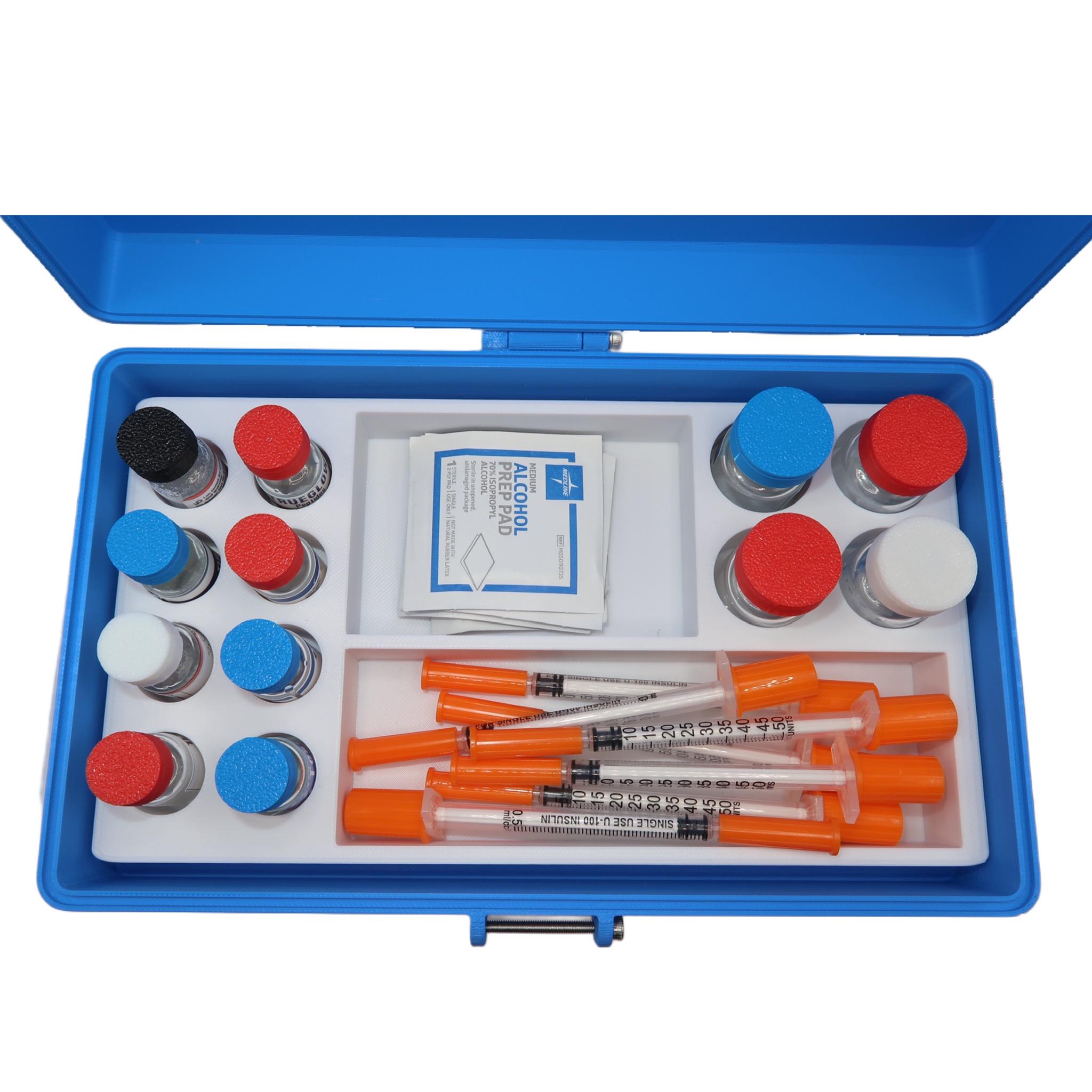 (Syringes, vials, and pads shown in the photo are for demonstration only and are not included with the case.)