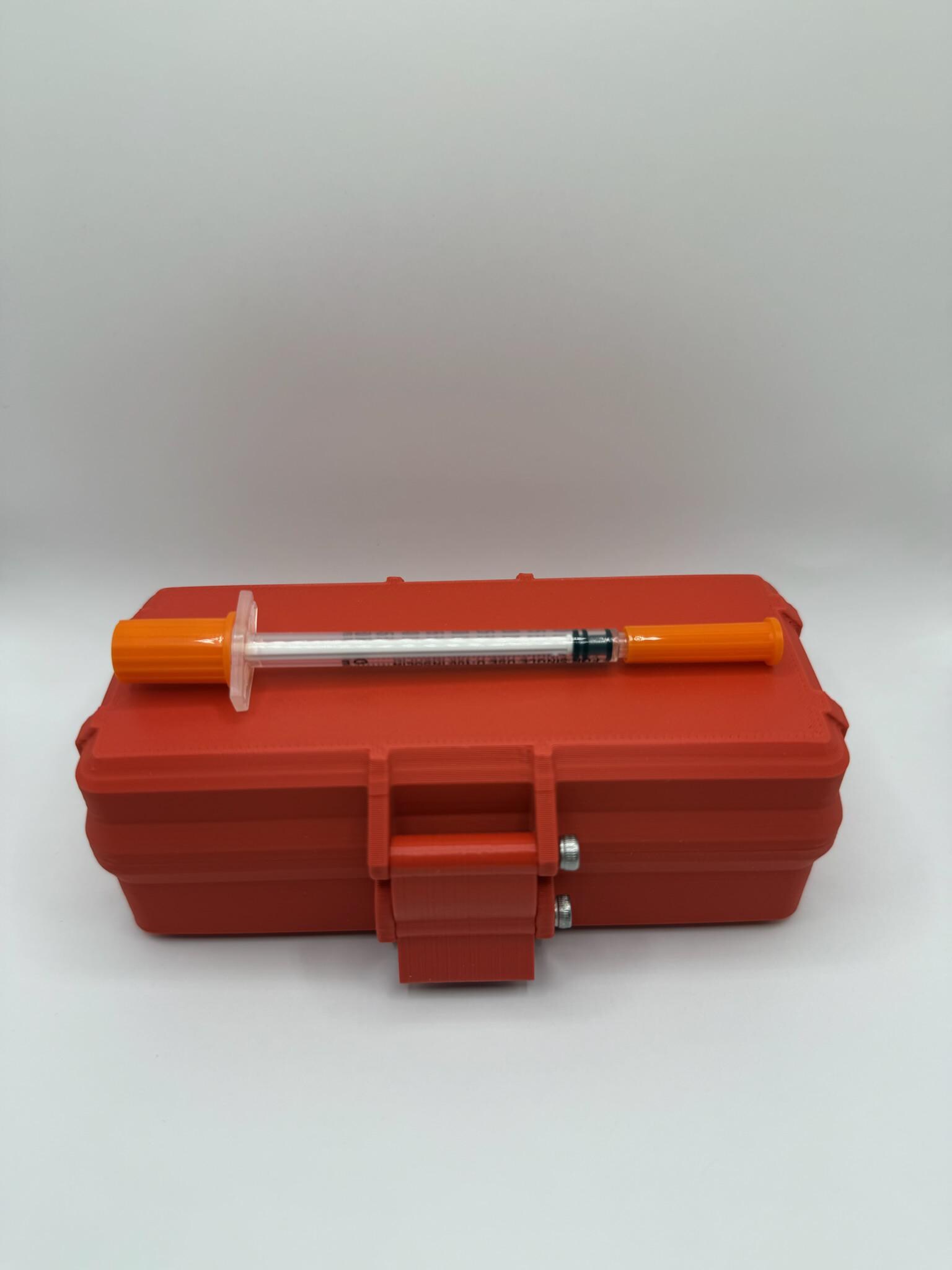 (Syringes, vials, and pads shown in the photo are for demonstration only and are not included with the case.)