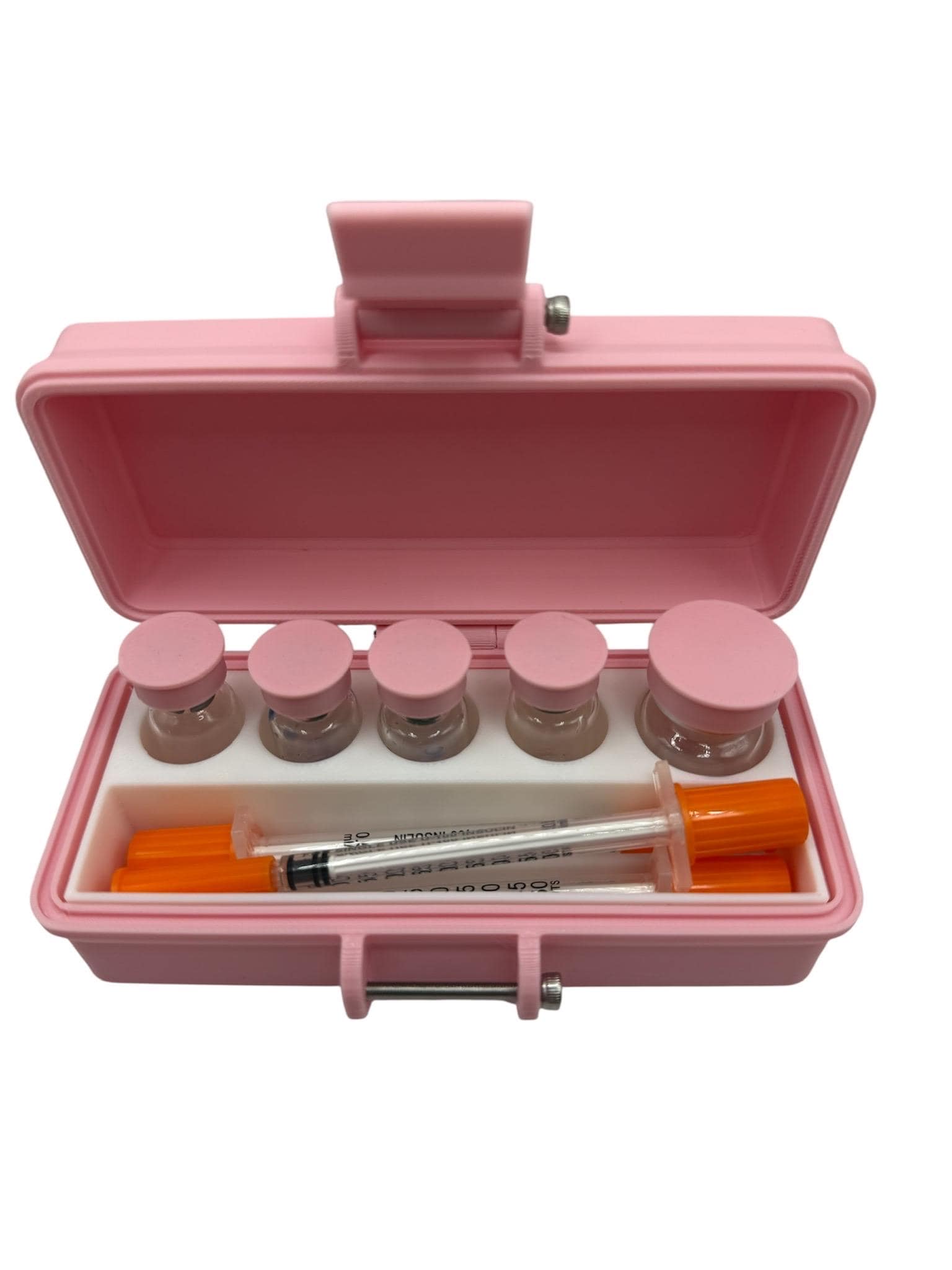 (Syringes, vials, and pads shown in the photo are for demonstration only and are not included with the case.)