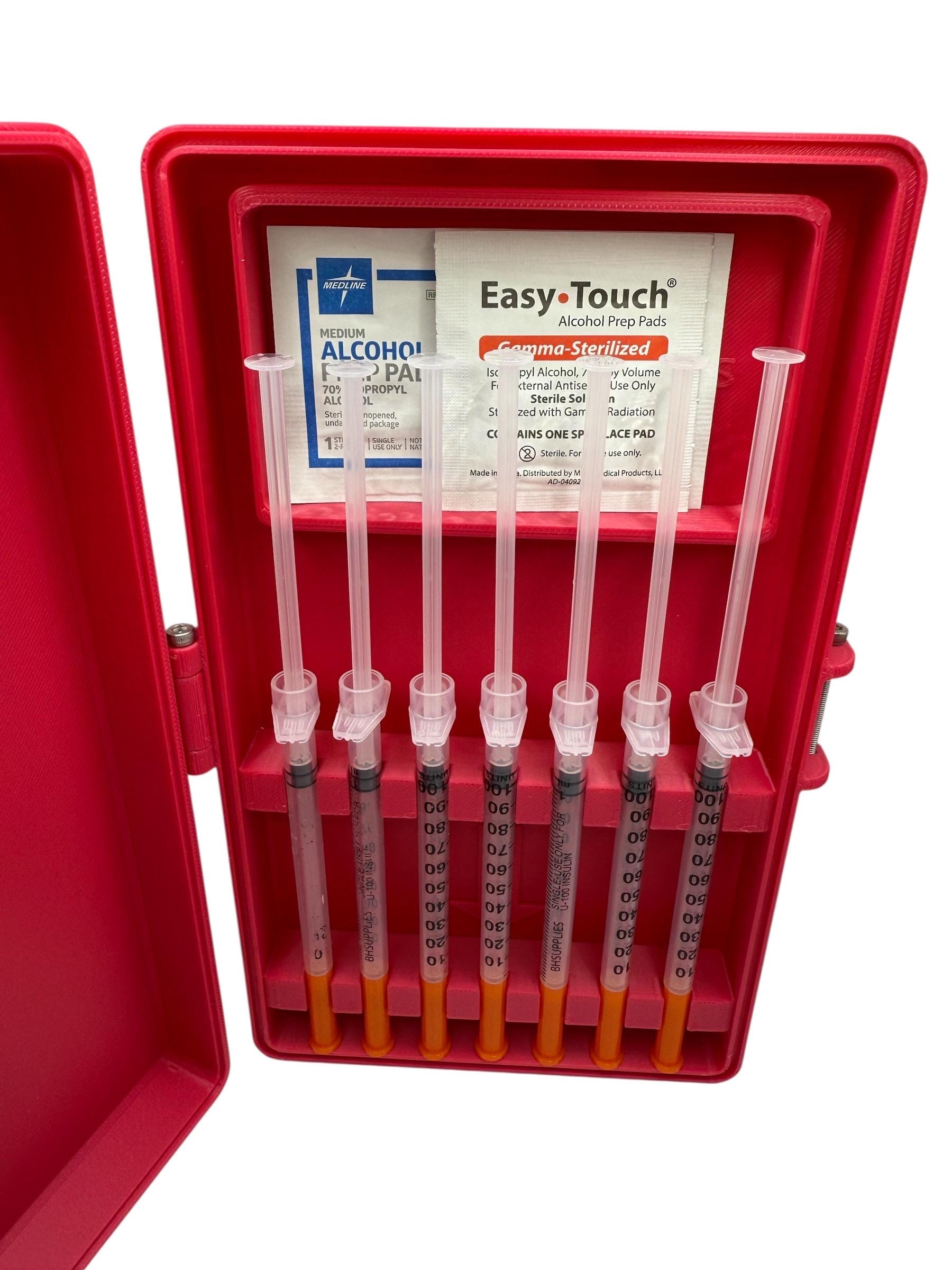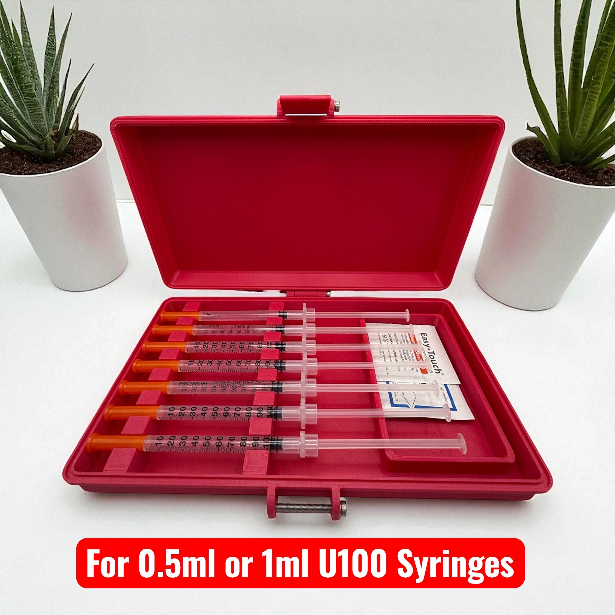 ⚠️ Important: These cases are designed ONLY for either 0.5 ml syringes (empty or preloaded) or 1 ml / 100-unit syringes, depending on your selection. Each case is made for one syringe size only—sizes are not mixed in the same box. Please check your syringe size before ordering.