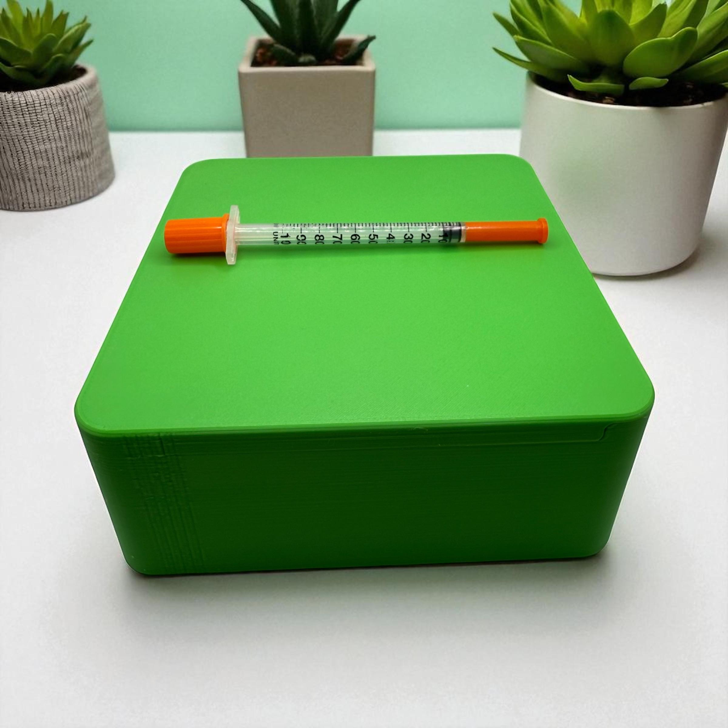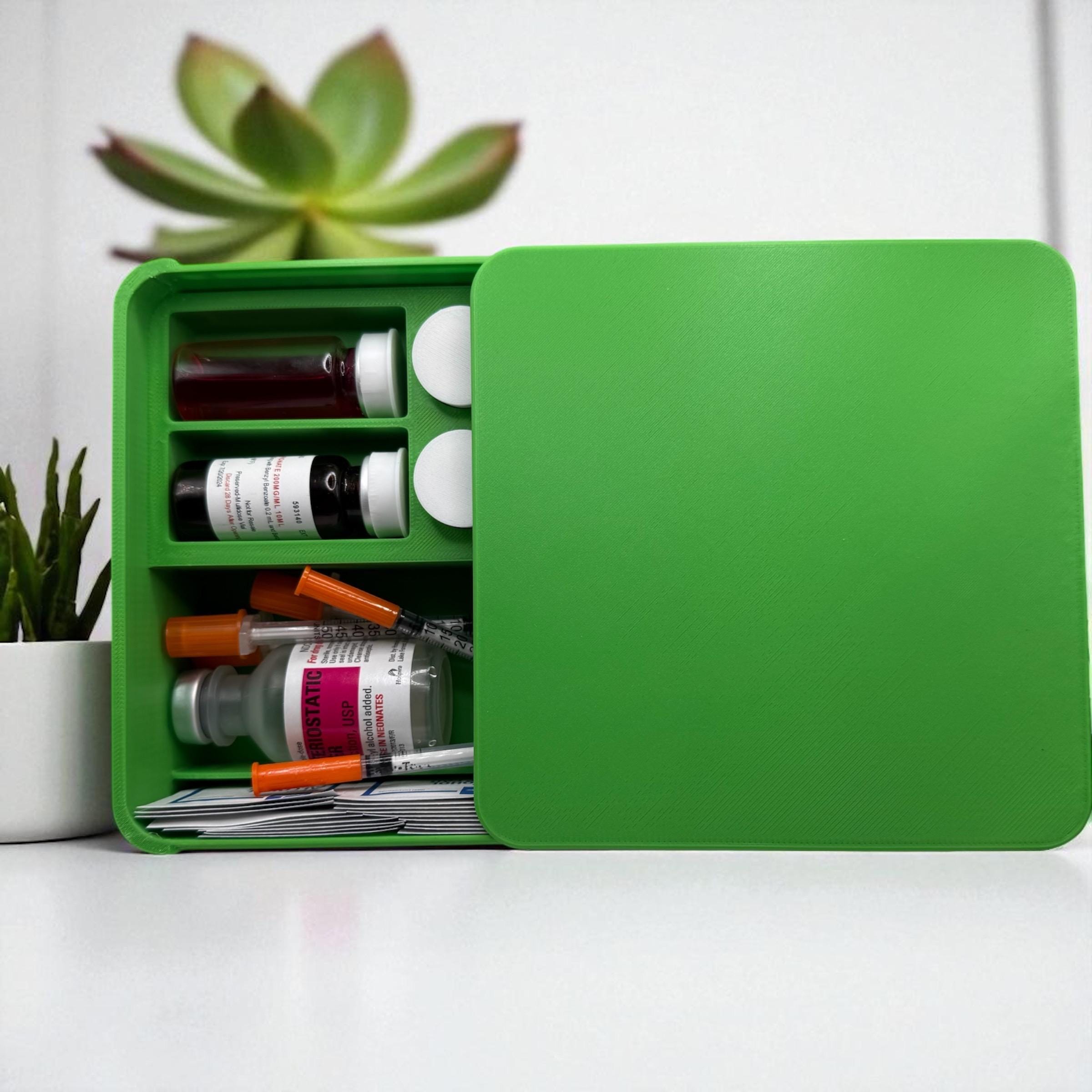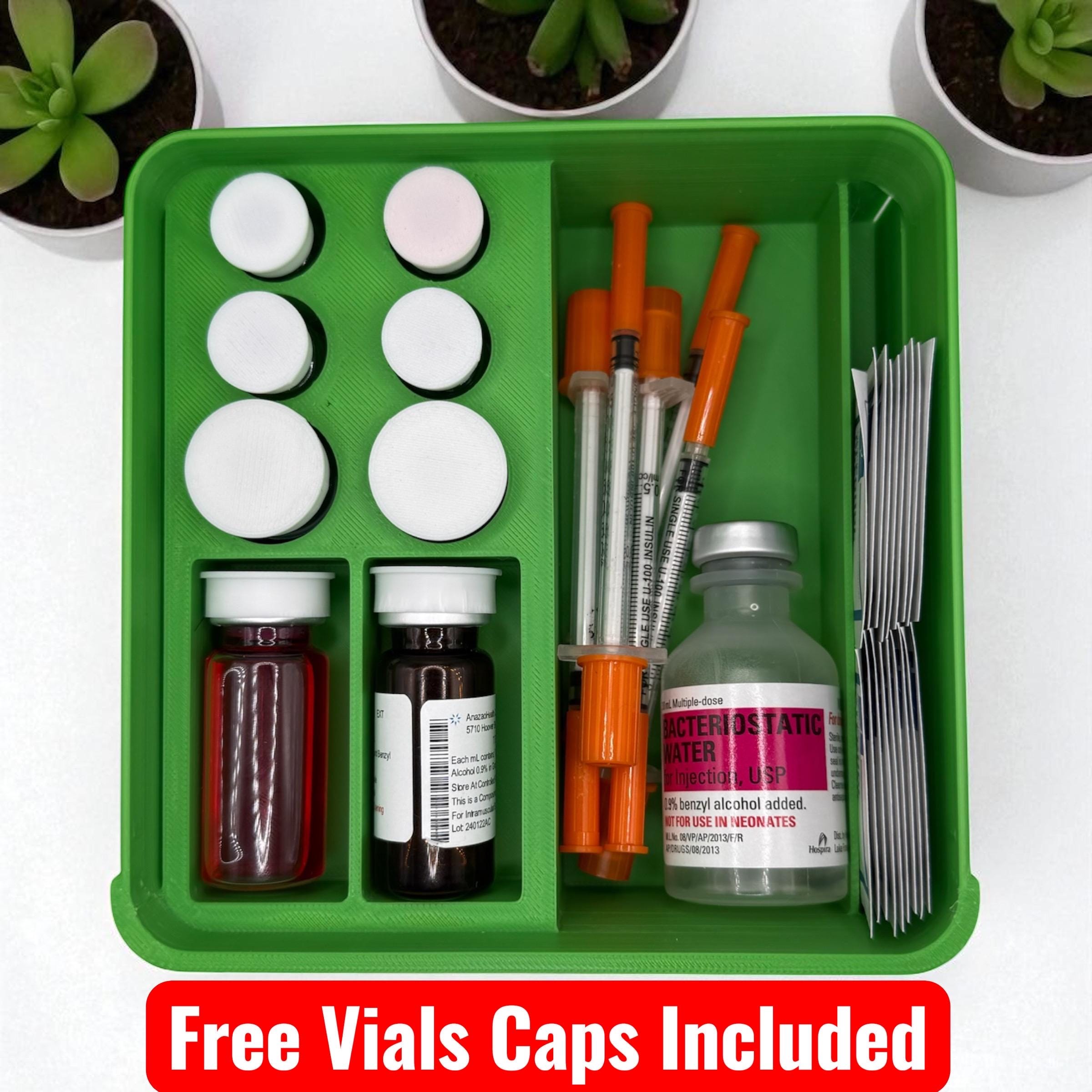 Important Notes: • Vials, syringes, and pads shown in photos are for demonstration only and are not included. • Color: Bright Green (other colors available upon request). • Each unit is made to order.