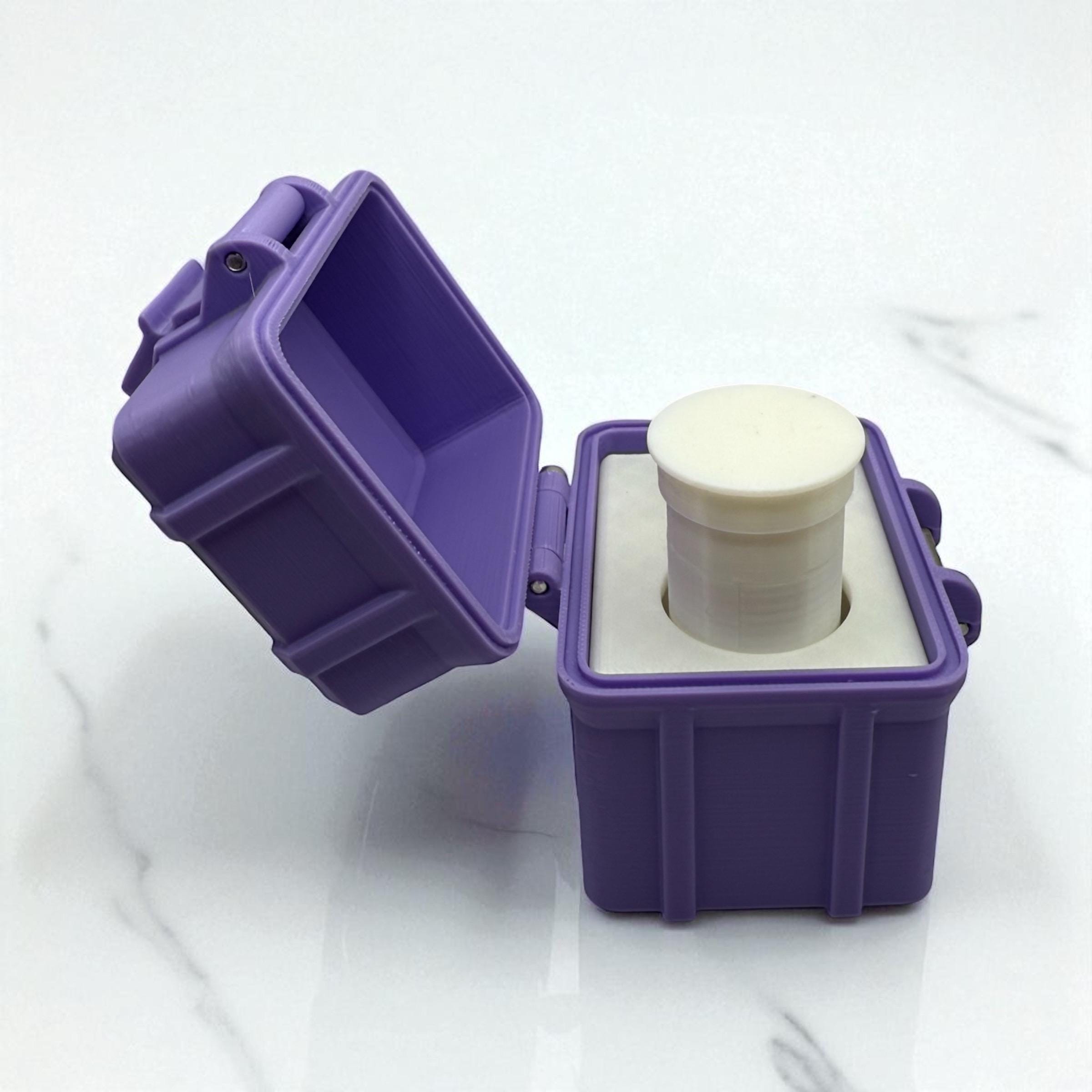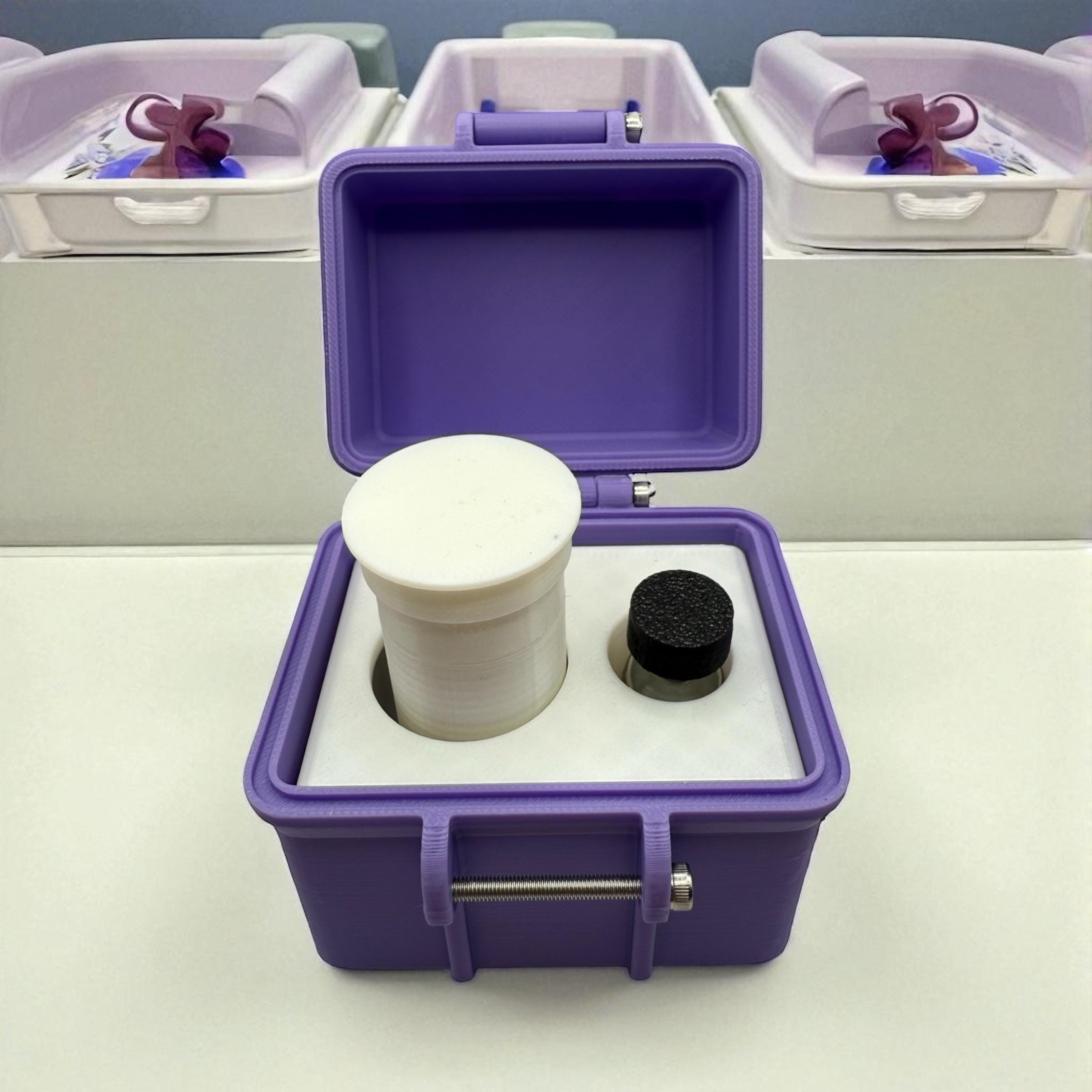 Keep your vials safe, organized, and always within reach with this custom-designed compact storage case. This sturdy 3D-printed box is designed to securely hold one 20ml vial and one 3ml vial in precision-cut inserts. Perfect for labs, research projects, or anyone needing a reliable way to transport and protect their vials.