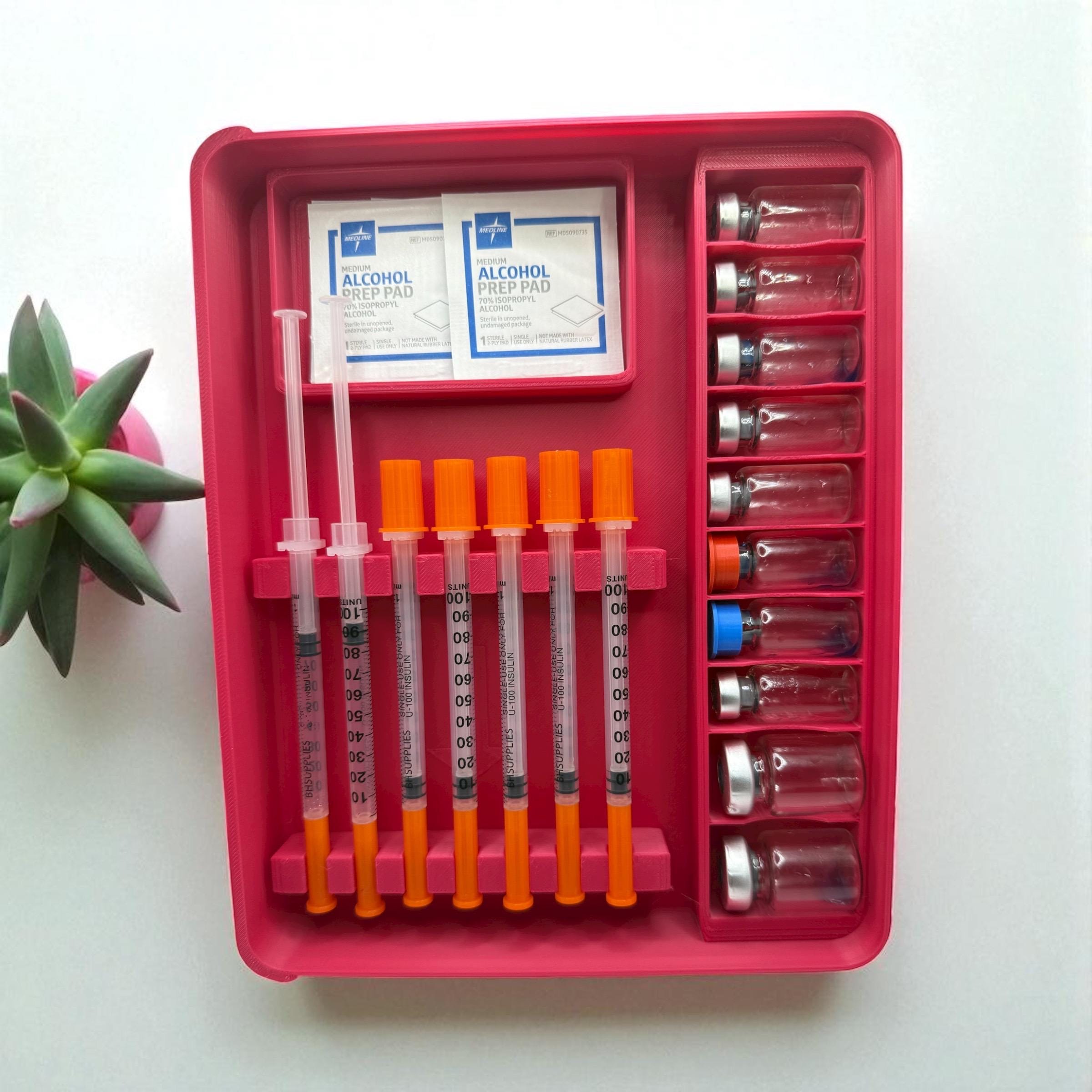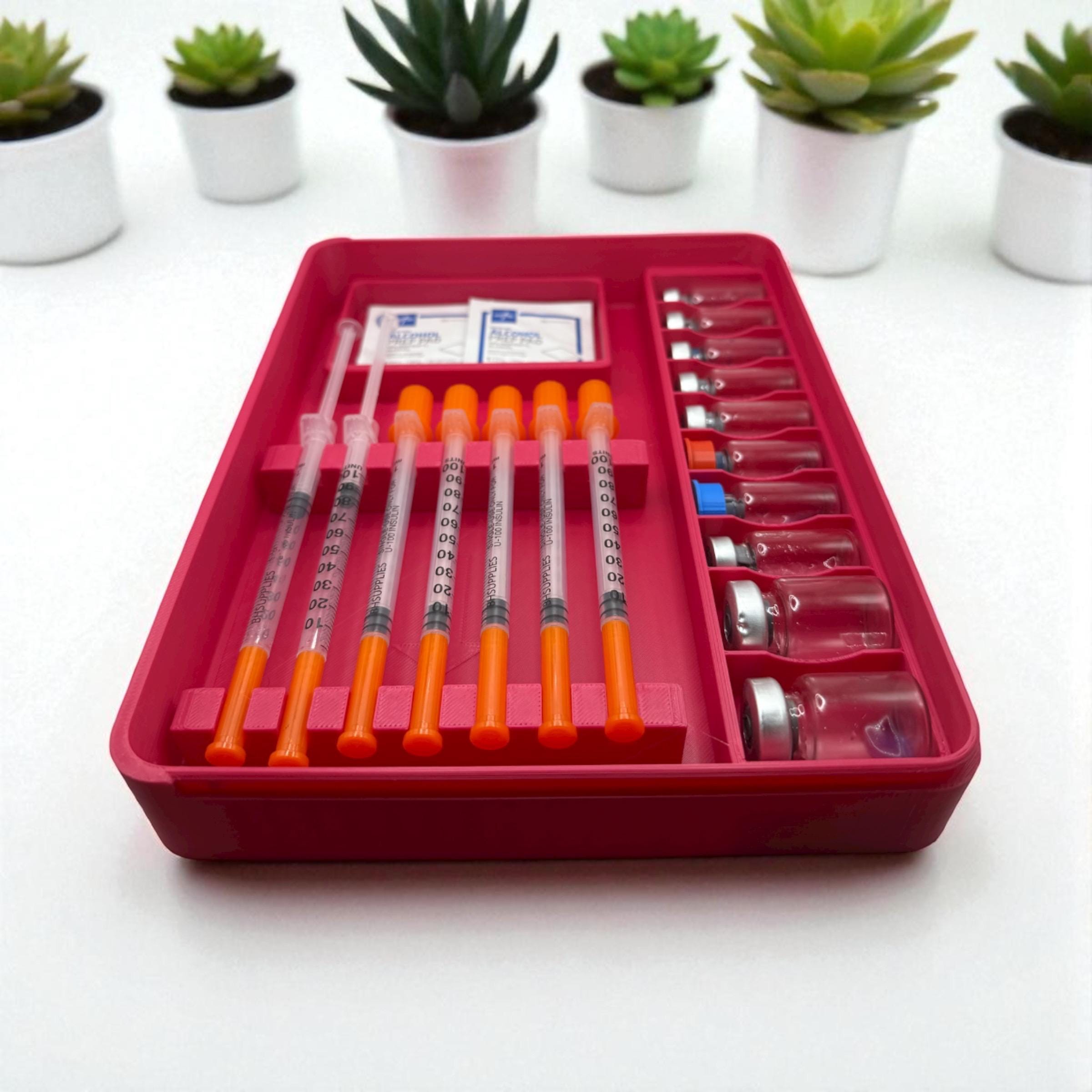 (Syringes, vials, and pads shown in photos are for demonstration purposes only and are not included with the case.)