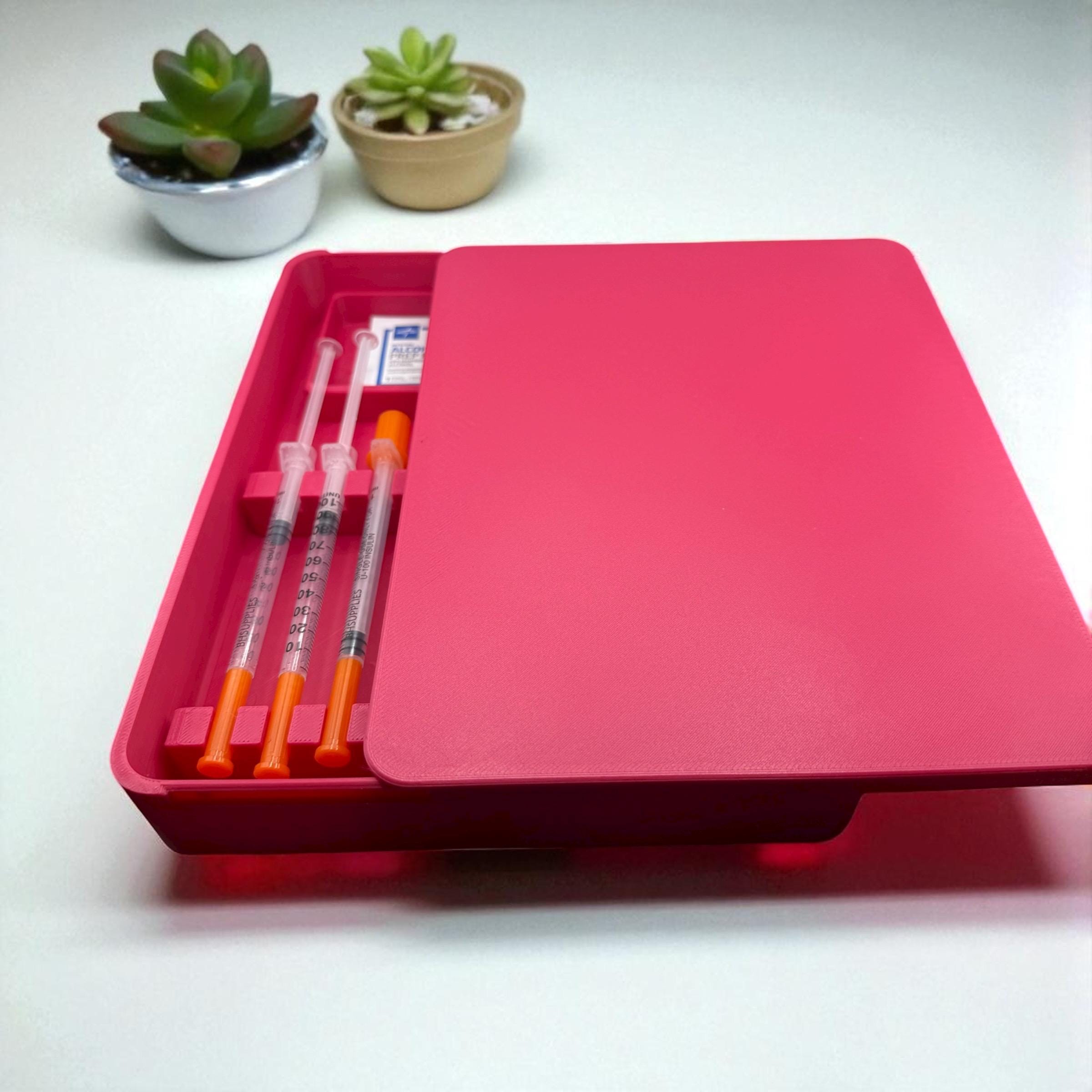 Keep your syringes safe and organized with this slim sliding case. Perfect for storing syringes along with alcohol pads, it’s lightweight, durable, and 3D-printed to order. The sliding lid keeps everything secure while allowing quick, hassle-free access. Its compact size fits easily in a drawer, freezer, or travel bag, making it ideal for peptides, insulin, testosterone, or other injectables.