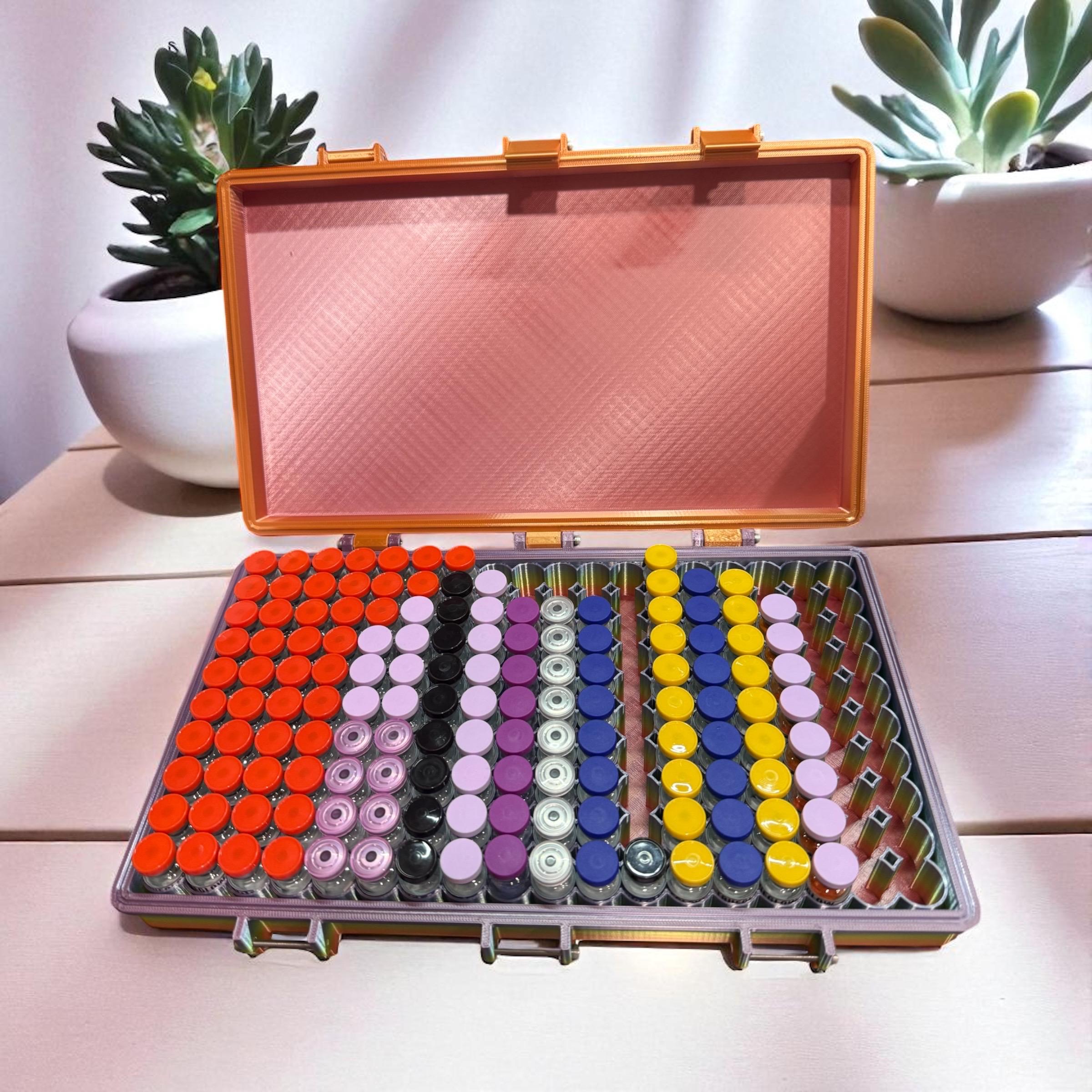 ✨ Features: • ✅ Capacity: Holds 180 × 3ml vials • ✅ Secure fit to prevent rolling, tipping, or damage • ✅ Lightweight & portable design for easy storage or travel • ✅ Protective lid: Keeps vials dust-free and secure