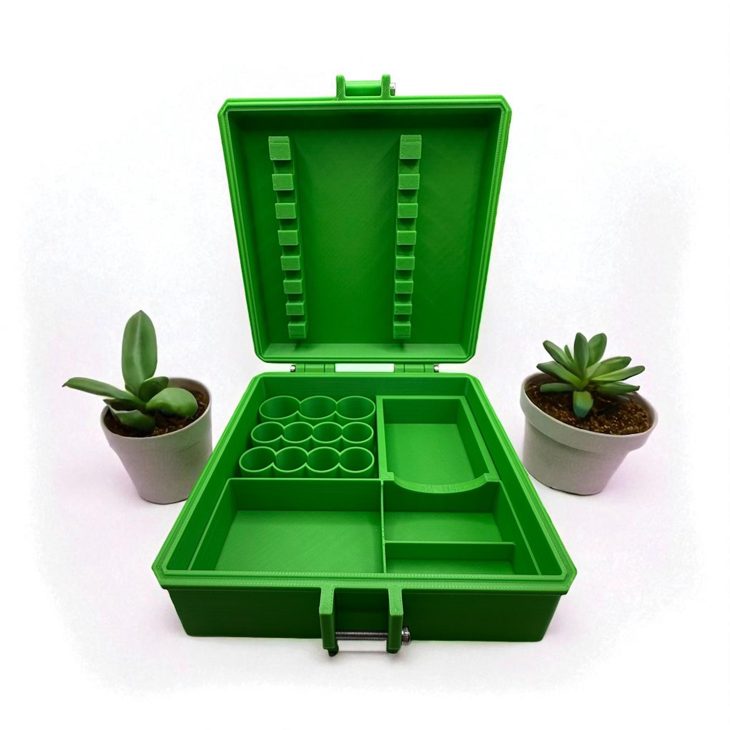 Features: • ✅ Durable 3D-printed PLA plastic • ✅ Smooth sliding lid for secure closure • ✅ Compact and lightweight for travel or storage • ✅ Neatly separates vial sizes for easy access • ✅ Reusable and eco-friendly design