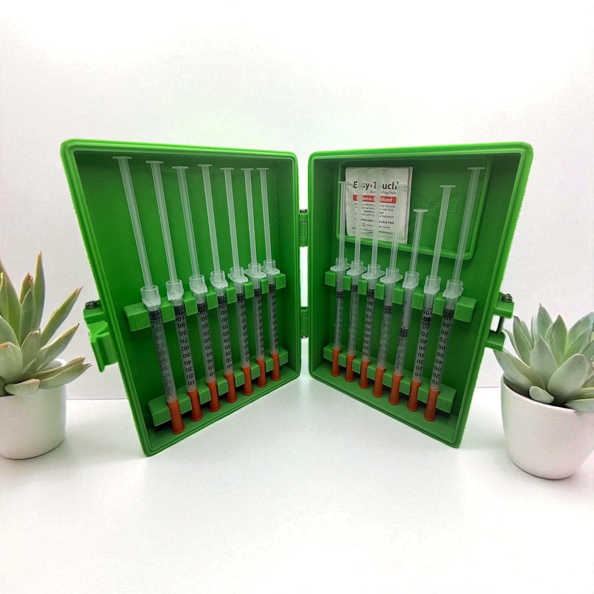 Important Notes • 💉 Vials, syringes, and pads shown in photos are for demonstration only and are not included. • 🎨 Color: Bright Green (other colors available upon request). • 🛠️ Each unit is made to order.