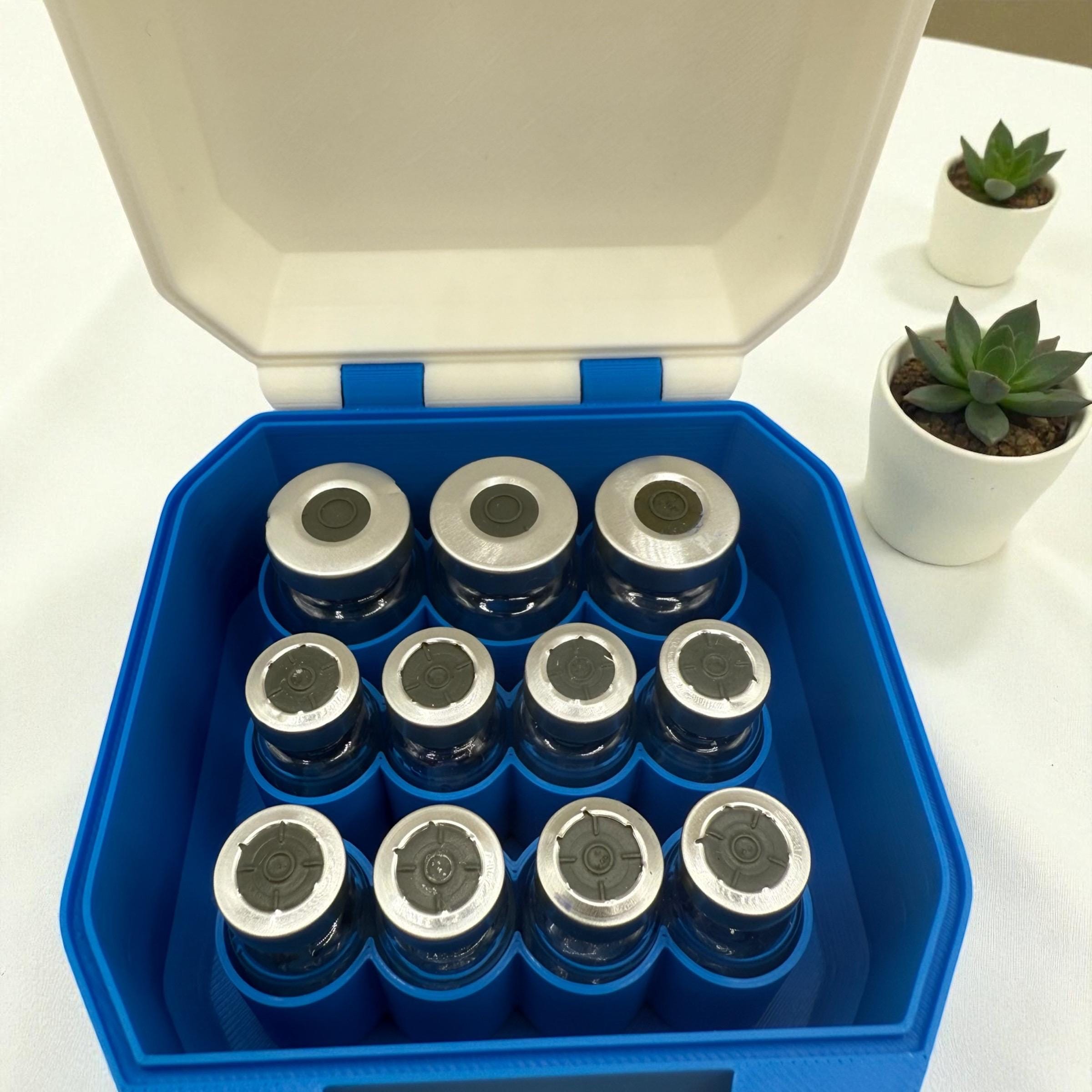 Features: 🔹 Custom Fit – Slots designed to hold (8) 3ml & (3)5ml vials. 🔹 Protective Design – Prevents tipping, rolling, or accidental damage. 🔹 Keep your vials dust-free and protected.