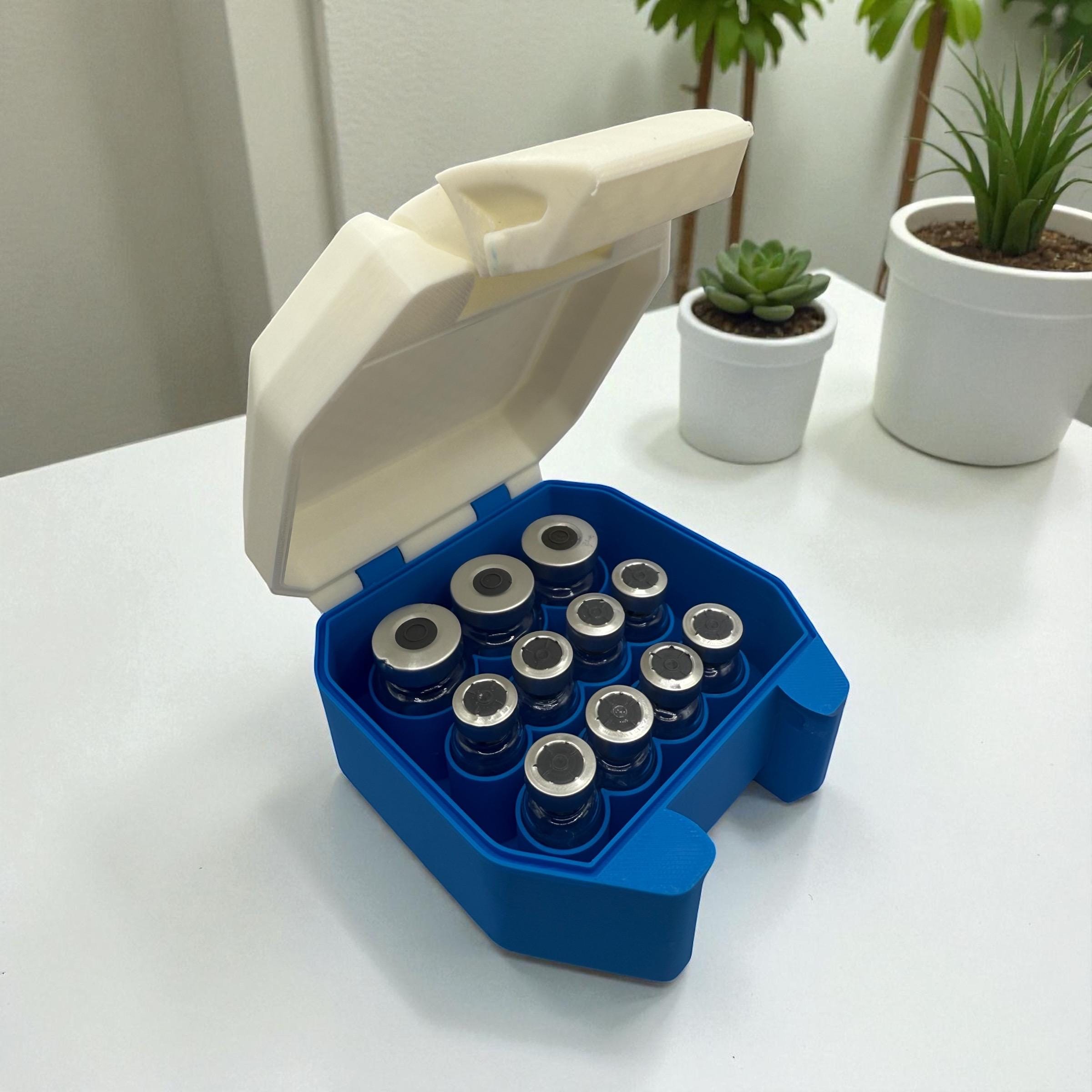 Keep your vials safe, organized, and always within reach with our Super Small Vial Storage System. Perfect for collectors, labs, and hobbyists, this compact unit securely holds 8 x 3ml vials, 3 x 5ml vials, insulin syringes and alcohol pads. Despite its capacity, the storage system is portable and light weight.