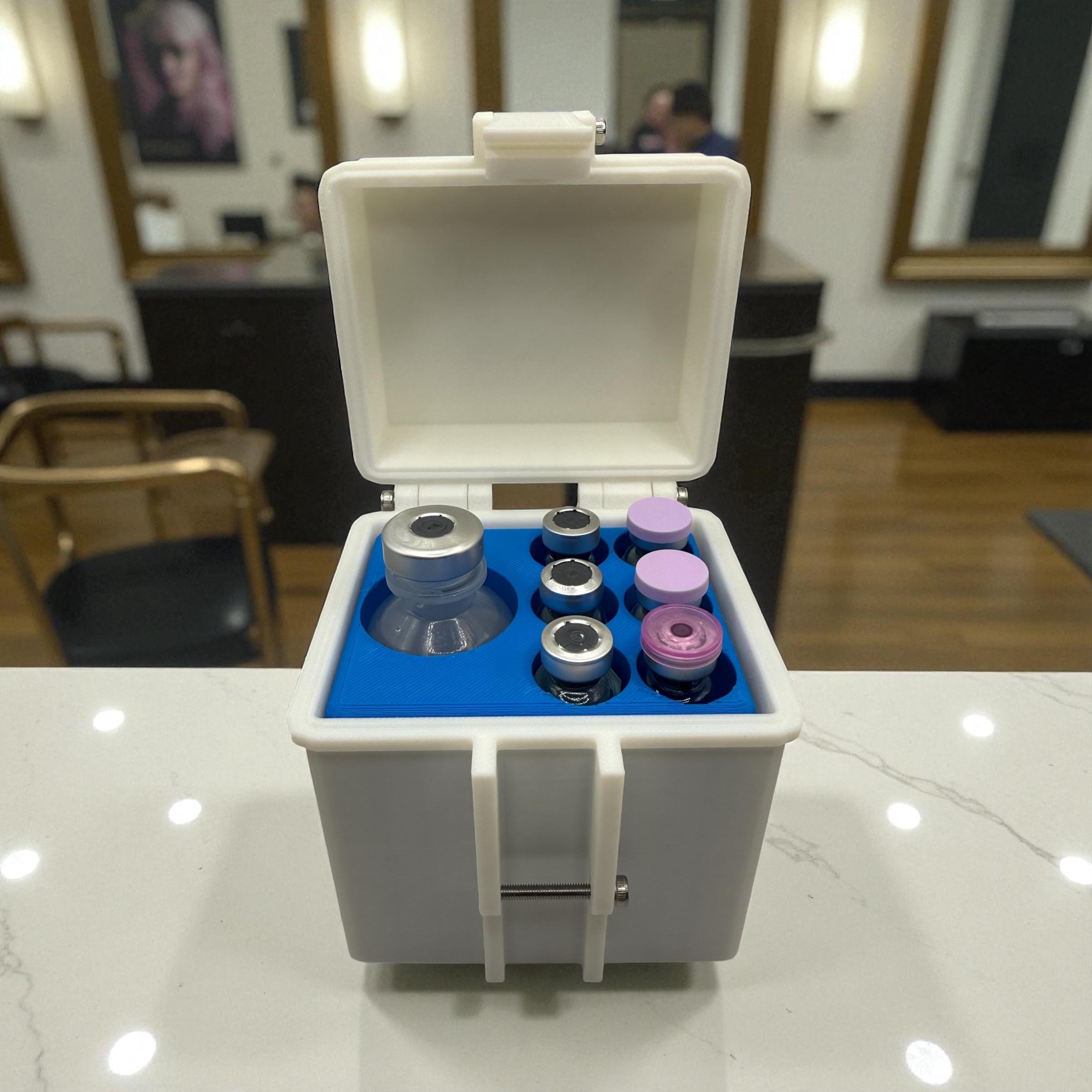 ✔️ Capacity – 6 × 3ml vials + 1 × 30ml Hospira bacteriostatic water vial ✔️ Durable & Lightweight – Made with high-quality PLA for strength and easy handling ✔️ Secure Closure – Sturdy latch keeps the case shut during storage or travel ✔️ Portable Size – Compact design makes it easy to store or transport ✔️ Custom Orders Available – Need a different vial setup? We can design a case for your specific needs.