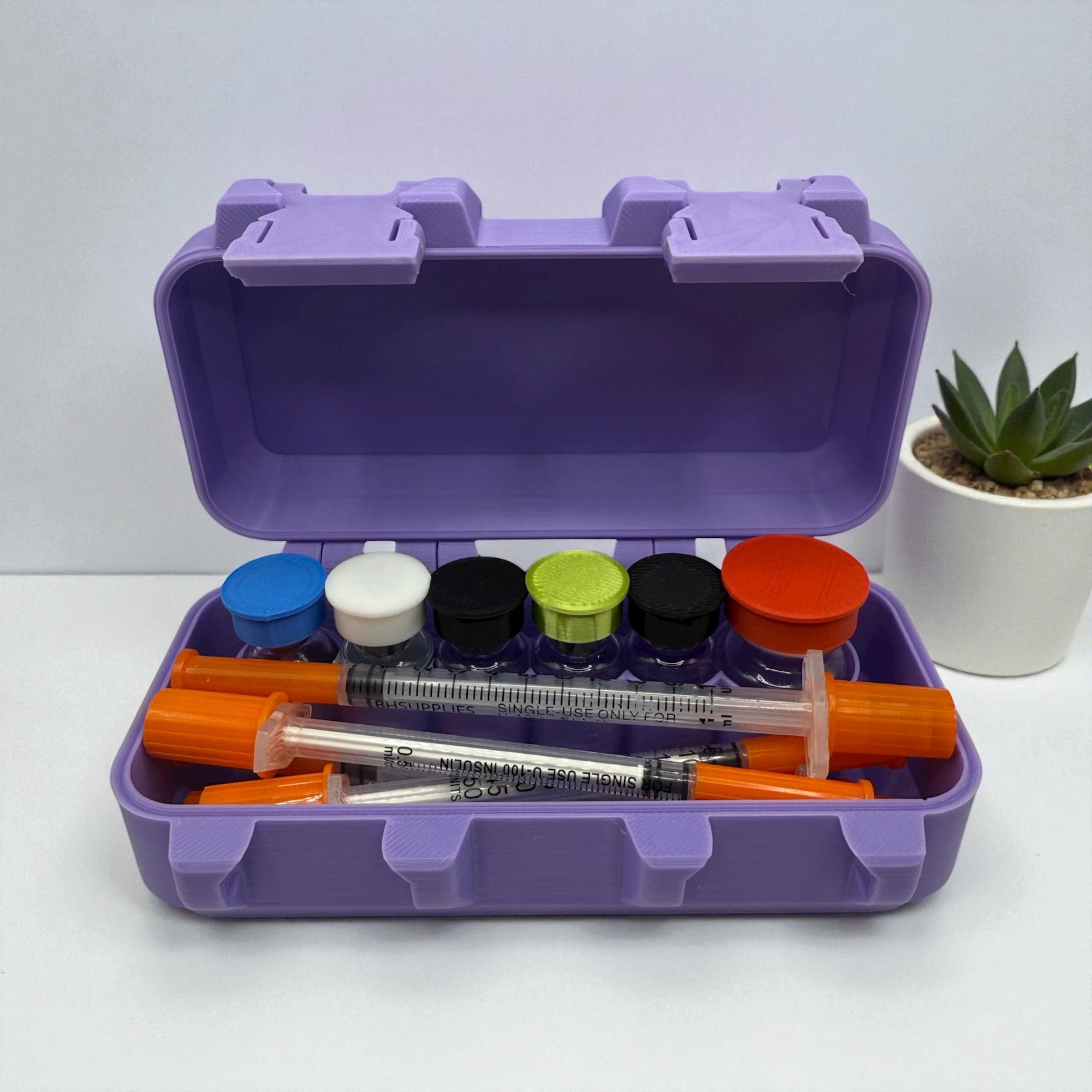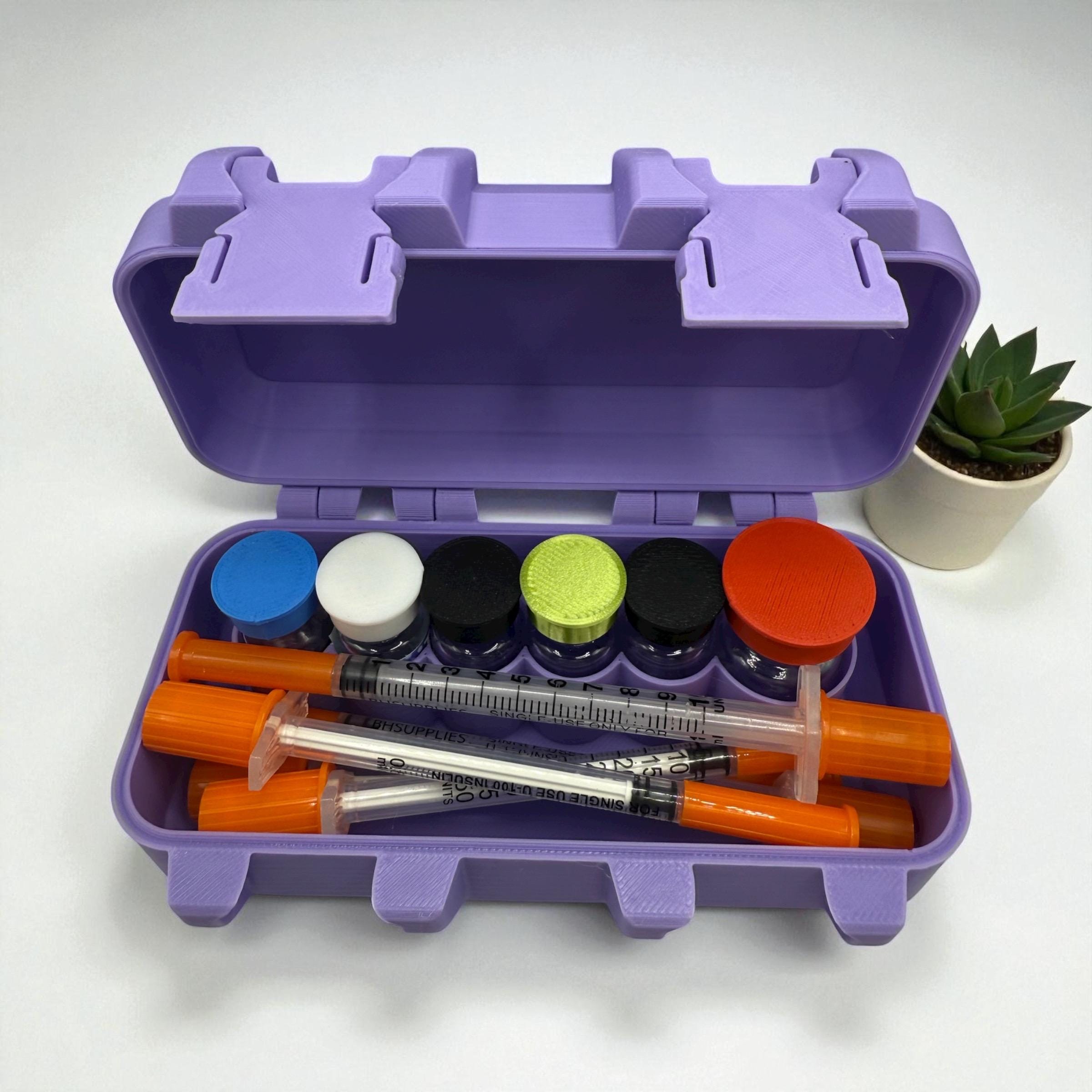 Keep your vials safe, organized, and always within reach with our Super Small Vial Storage System. Perfect for collectors, labs, and hobbyists, this compact unit securely holds 5 x 3ml vials, 1 x 5ml vial, and up to 4 (0.5ml) insulin syringes. Despite its capacity, the storage system is mini, portable, and no larger than a single insulin syringe unit.