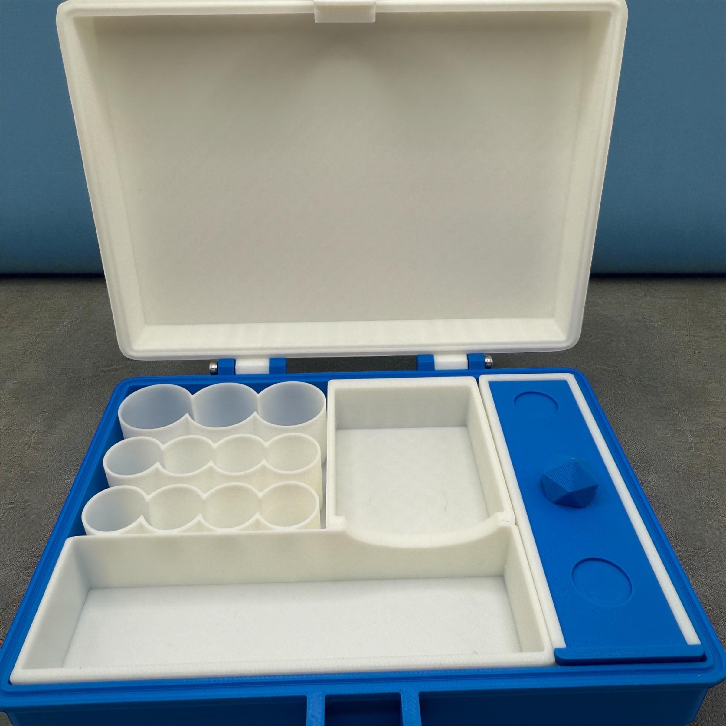 Features: • ✅ Durable 3D-printed PLA plastic • ✅ Smooth sliding lid for secure closure • ✅ Compact and lightweight for travel or storage • ✅ Neatly separates vial sizes for easy access • ✅ Reusable and eco-friendly design