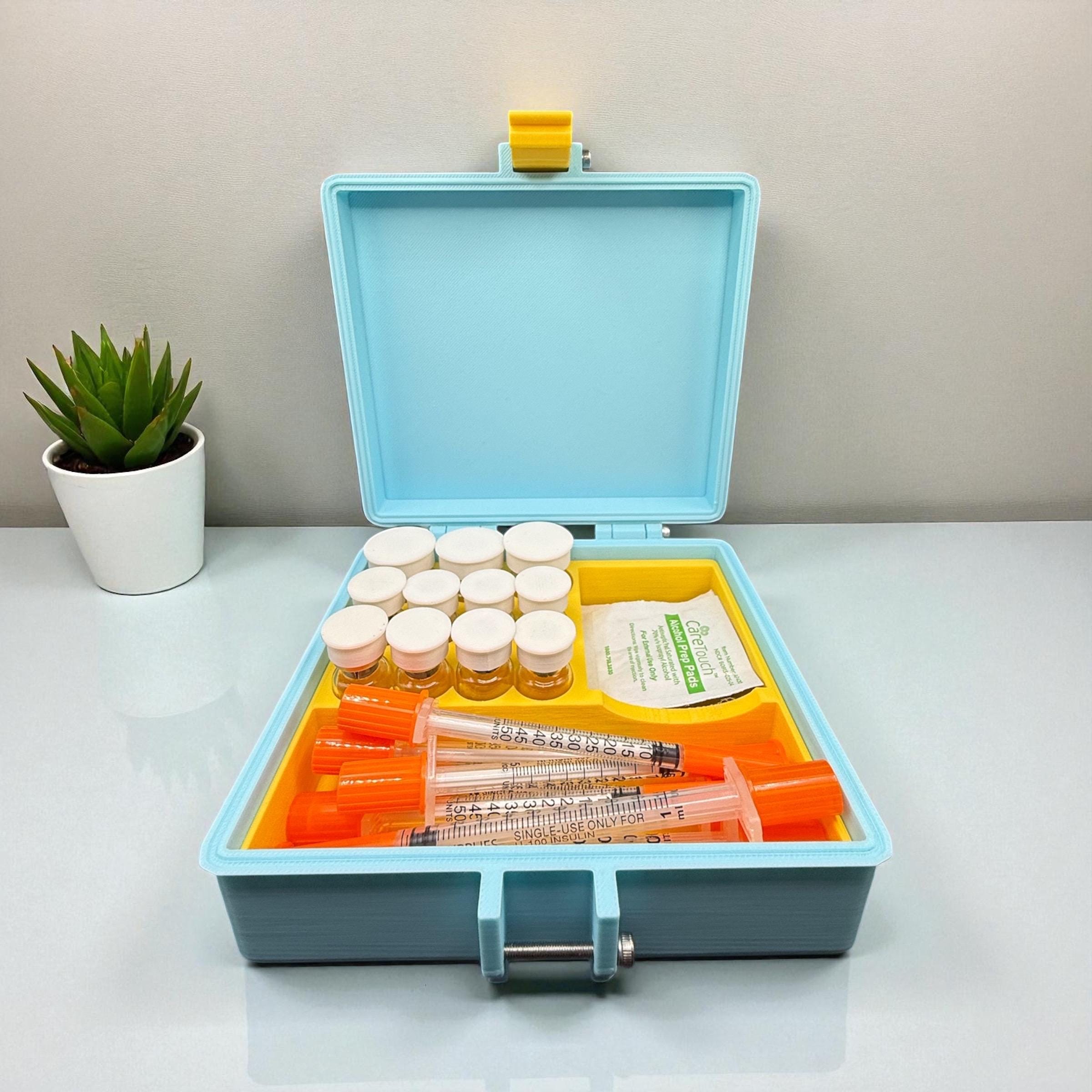 (Syringes, vials, and pads shown in the photo are for demonstration only and are not included with the case.)