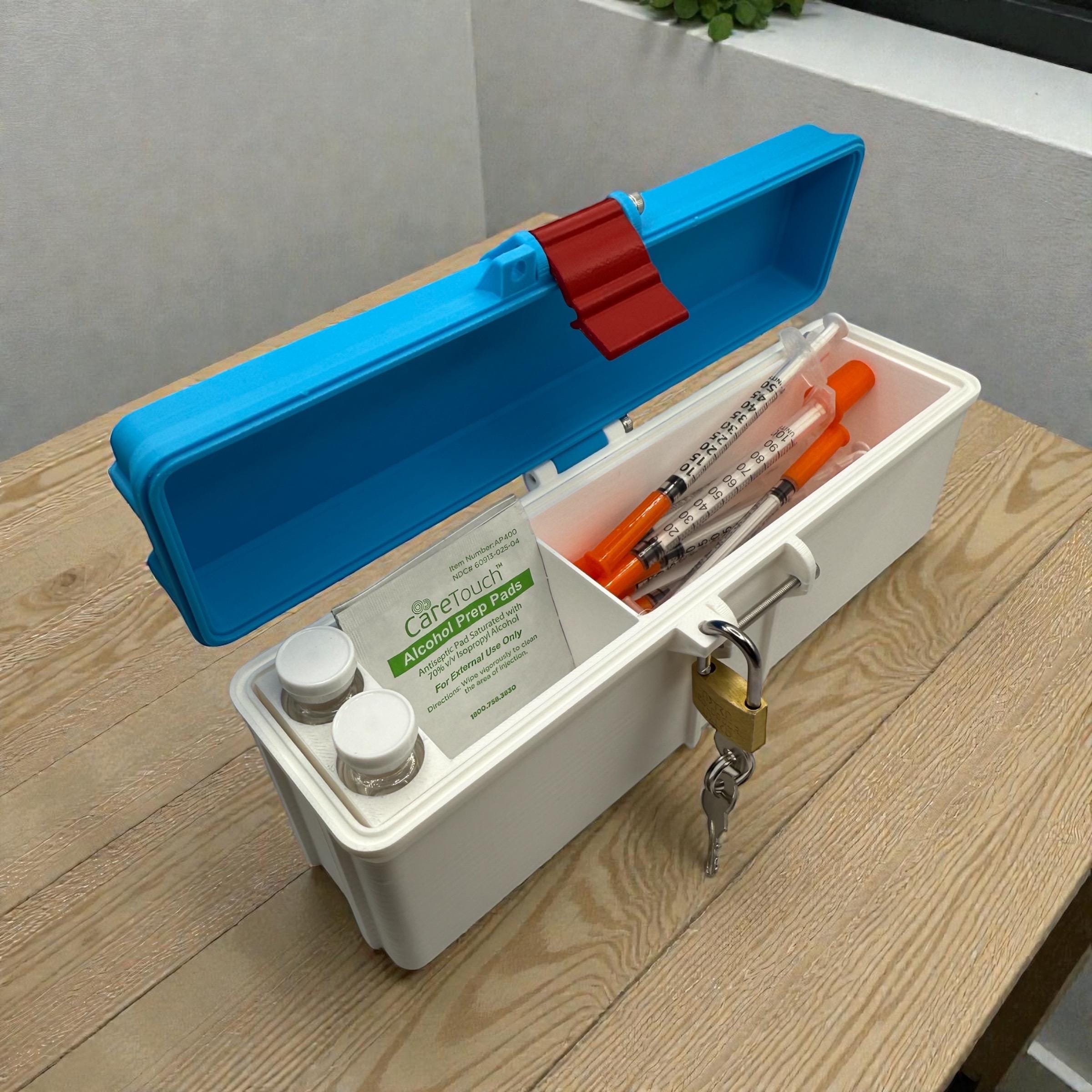 ✨ Features: • Compact & Portable – Slim design fits easily in a backpack, luggage, or drawer. • Durable Hard Shell – Protects syringes, vials, and pads from damage. • Secure Closure – latch keeps your supplies safely locked inside with lockpad • Organized Storage – Holds syringes, alcohol prep pads, and a 3ml vial • Discreet & Professional – Neutral design looks like a simple storage case.