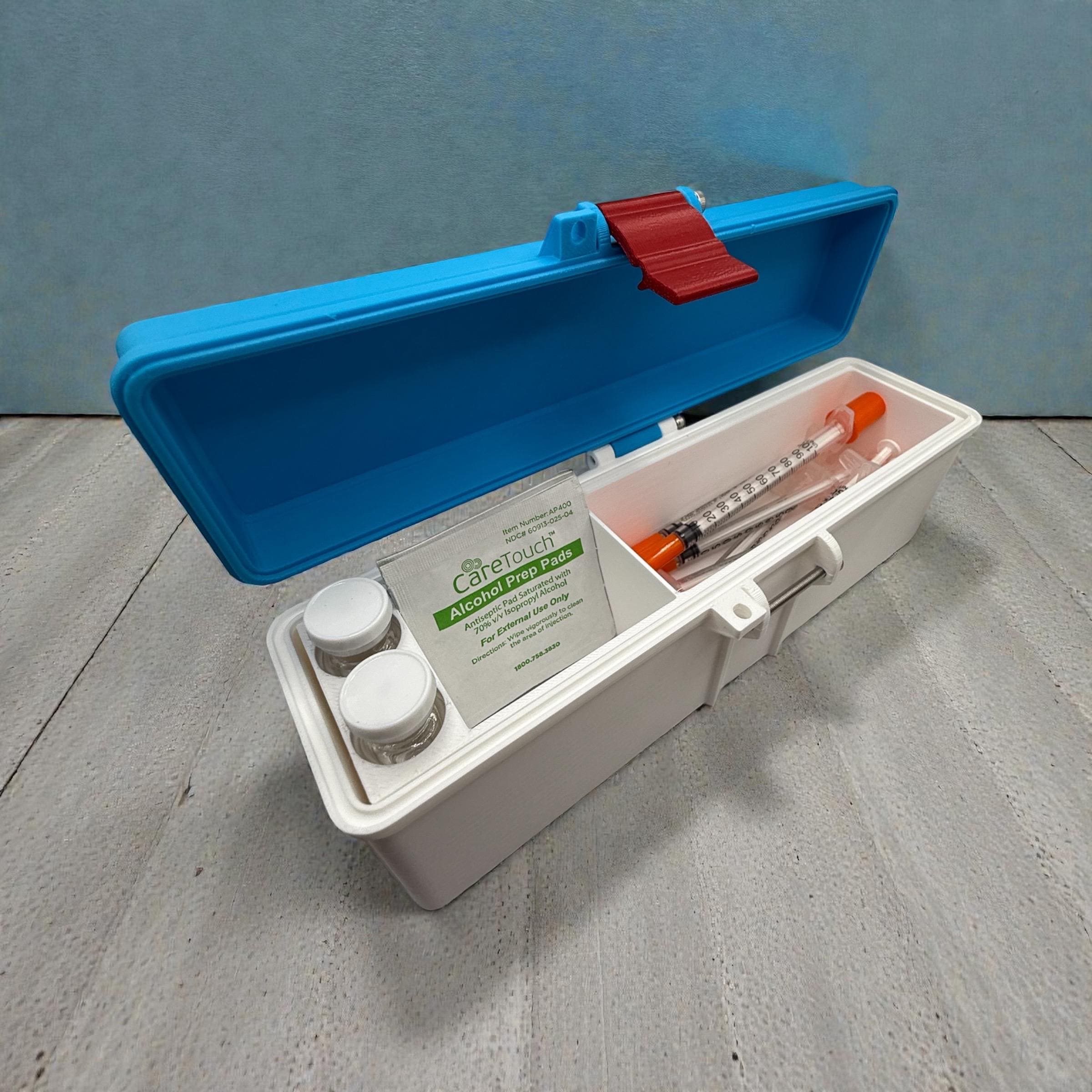(Syringes, vials, and pads shown in the photo are for demonstration only and are not included with the case.)